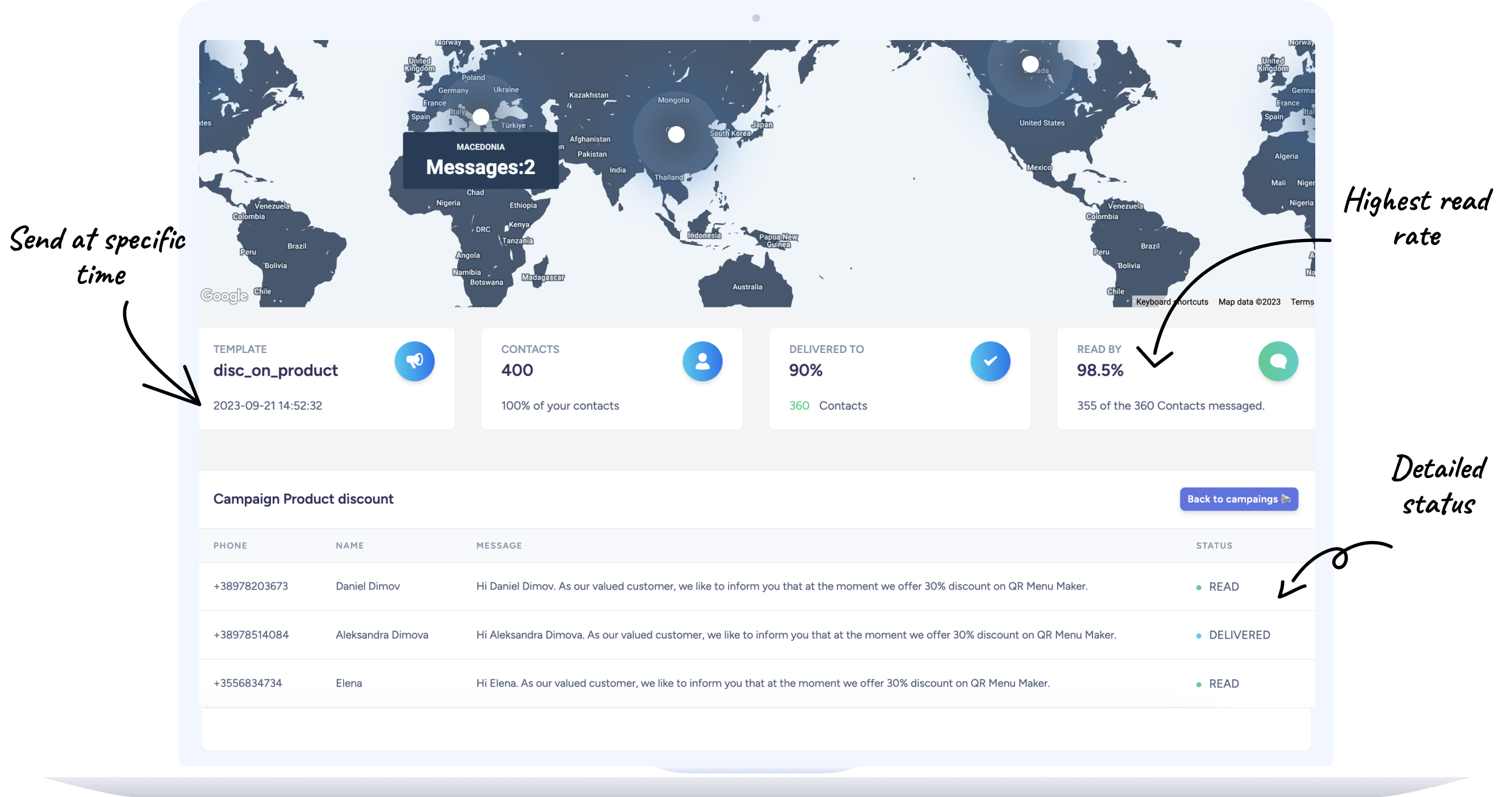 Le marketing WhatsApp est un nouveau domaine dans le marketing direct. Profitez d’un taux de lecture d’environ 98 % sur vos campagnes et ne craignez plus que votre compte soit bloqué par WhatsApp.